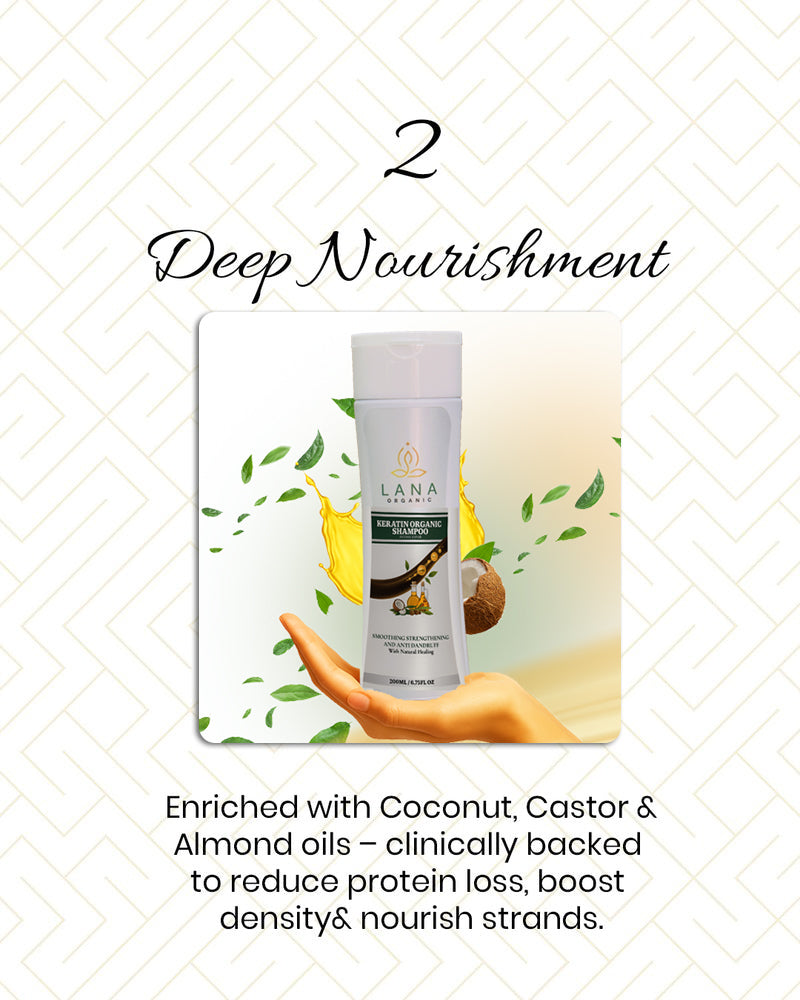 Say goodbye to dandruff, dryness, and dull hair with Lana Organic’s Keratin Anti Dandruff Shampoo a powerful blend of organic ingredients and keratin proteins that deeply cleanse your scalp while repairing and strengthening hair from root to tip.